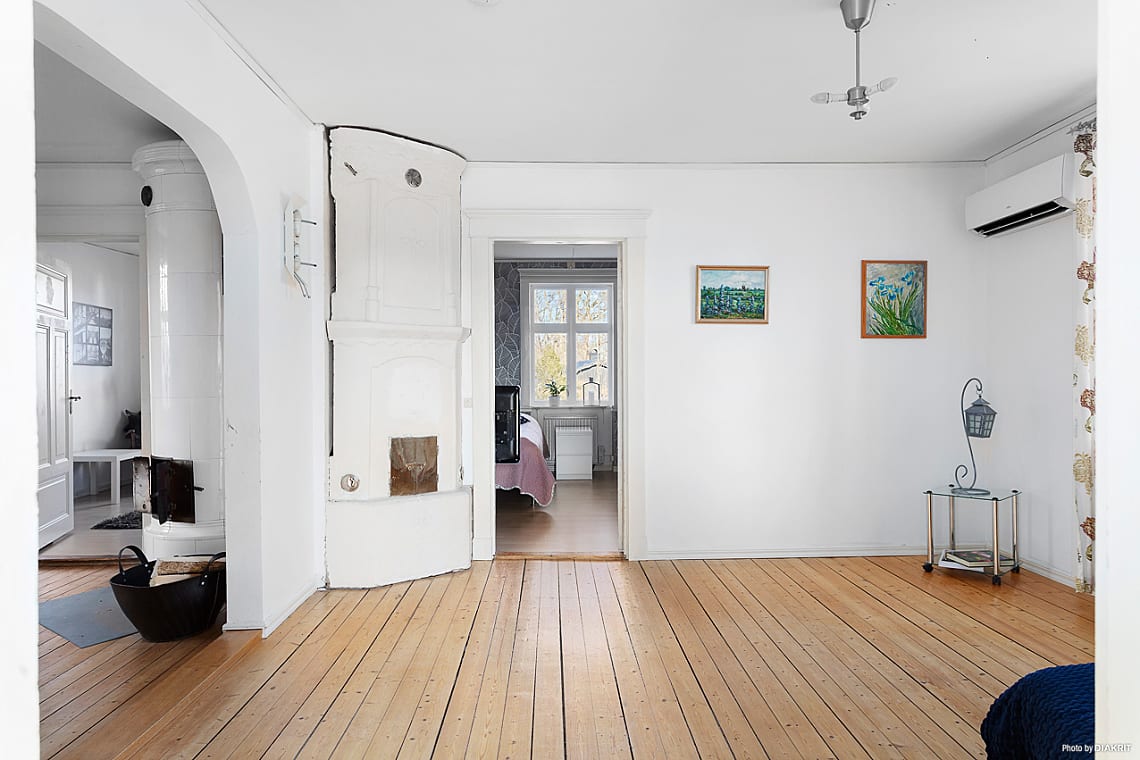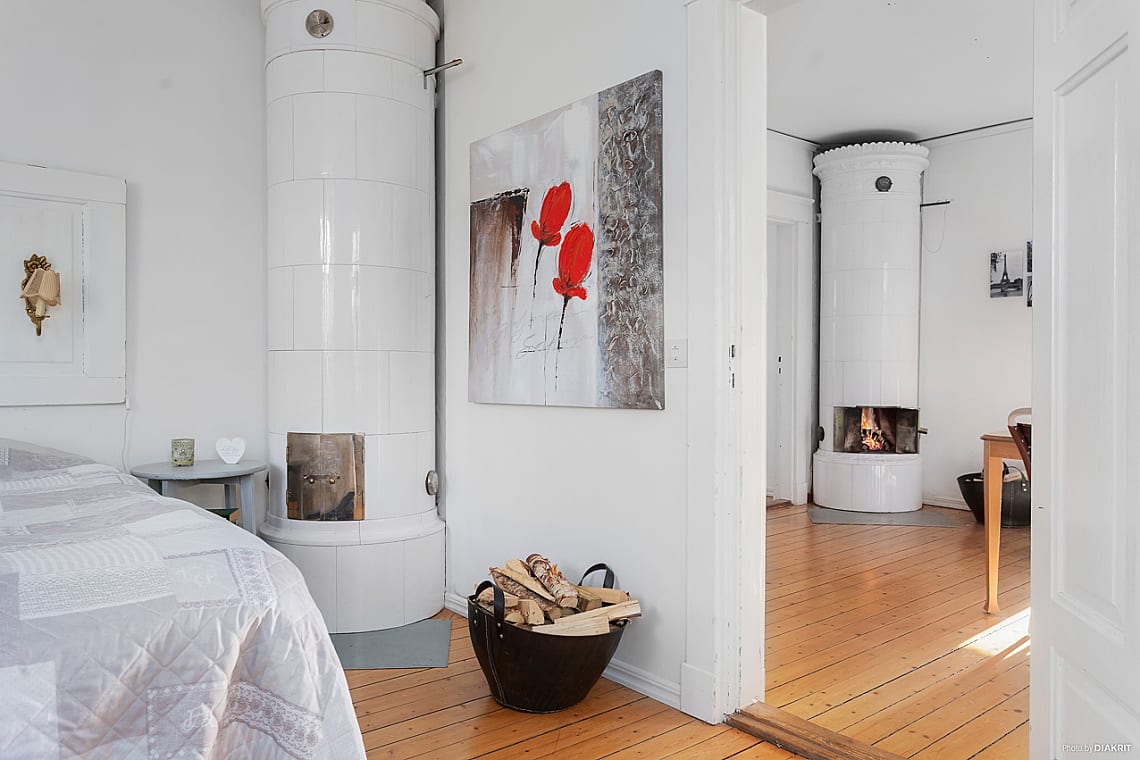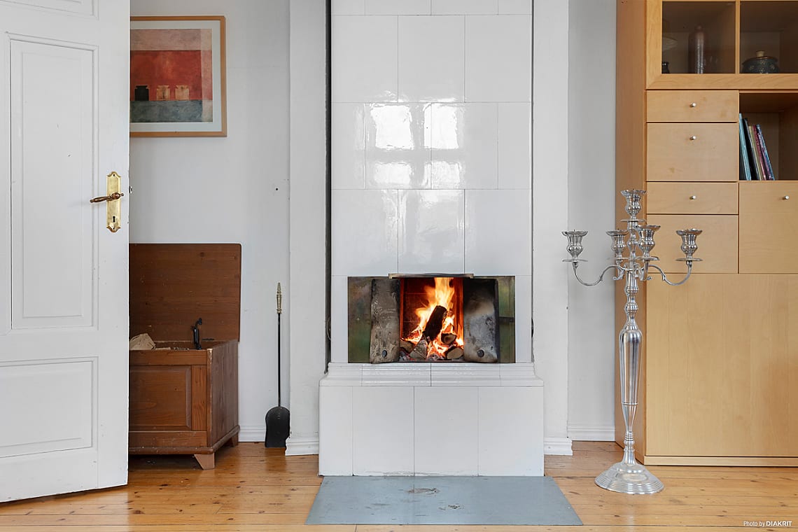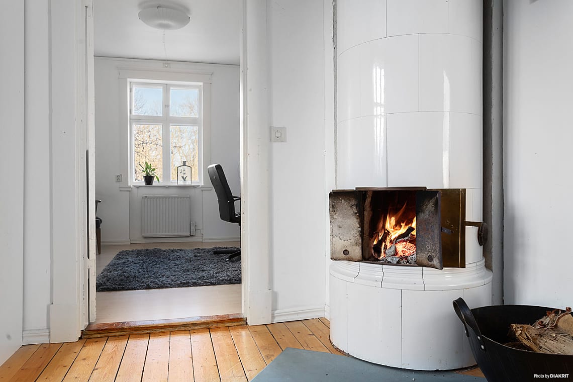 Ja, En rörspis på övervåningen som är eldningsförbud på. Även en gammal kamin i källaren som sotaren inte har kontrollerat.