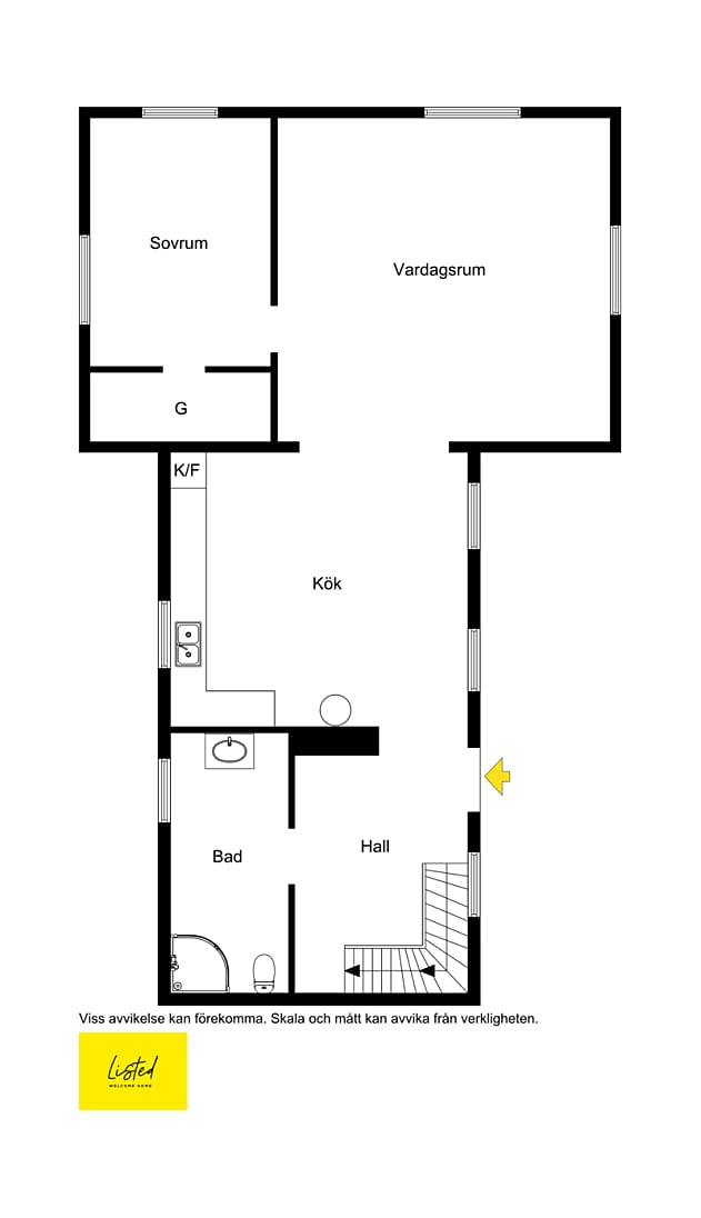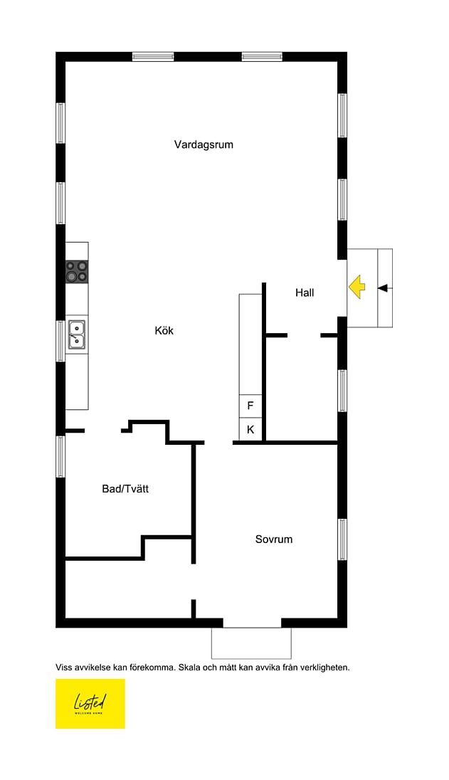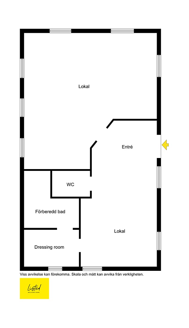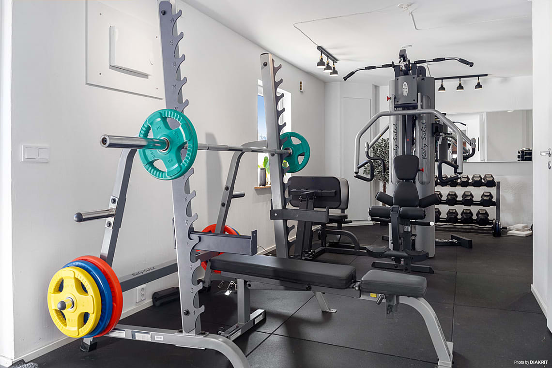 Entréplan erbjuder ett stort kontorsrum, ett inrett gym för träning hemma, samt en praktisk toalett. Ett kaklat och välordnat rum är även förberett för våtrum, vilket ger möjlighet för framtida anpassning.