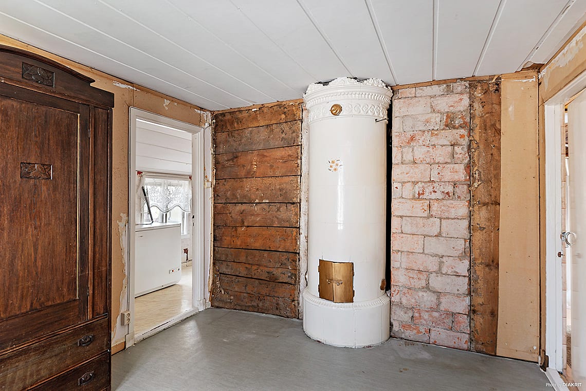 Ja, renoverat köket, vardagsrum, ett sovrum, badrum under renovering, två sovrum på övervåning under renovering.