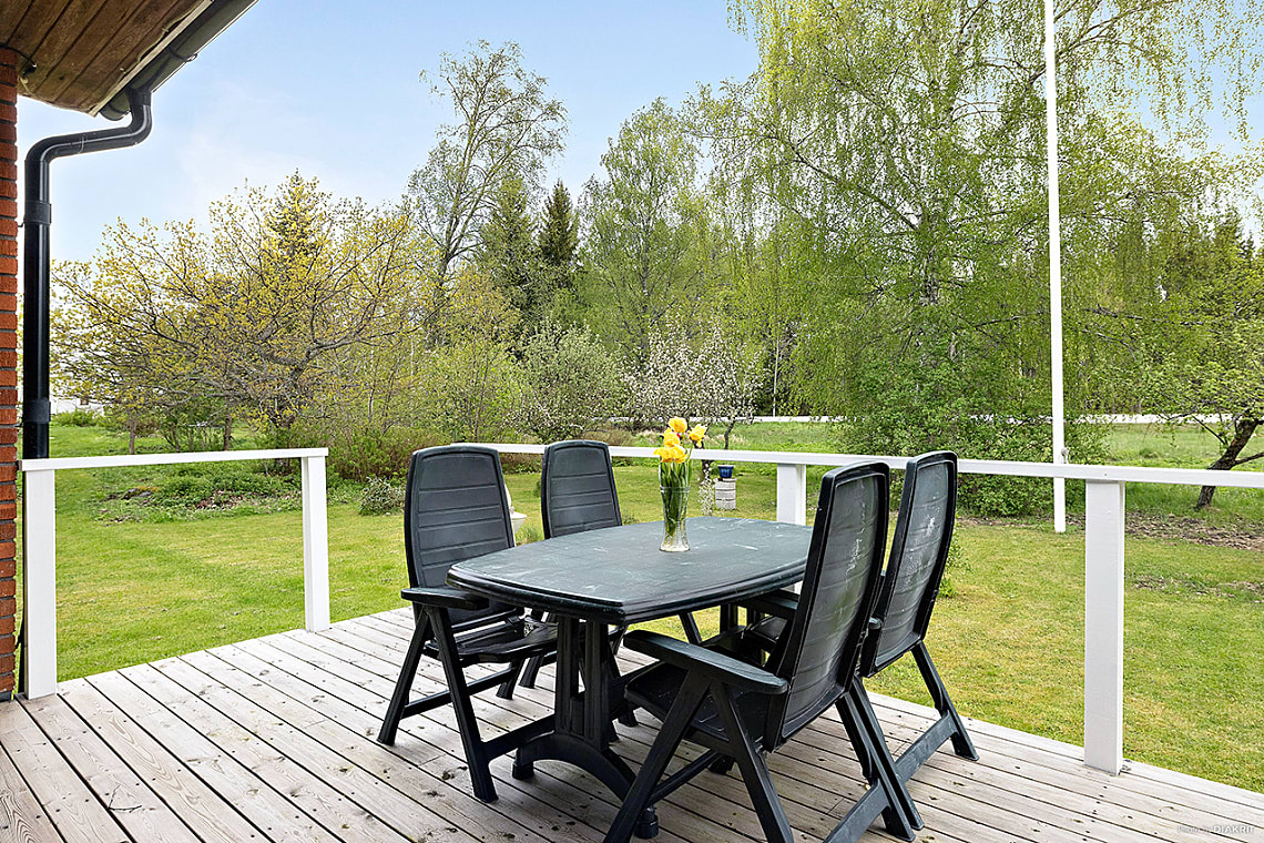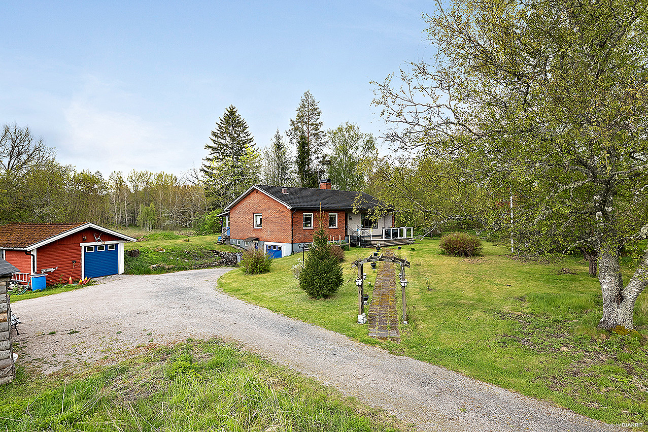 Den generösa tomten bjuder på ett äppelträd, rabarber och gott om plats för både lek och odling. Här finns även en carport samt ytterligare ett garage med trädgårdsförråd. Två uteplatser, varav en under tak, ger fina möjligheter till avkoppling i både sol och skugga.