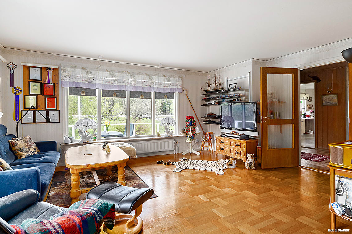 Välkommen till detta charmiga enplanshus med källare i ett lugnt och naturnära läge– ett hem som erbjuder både funktion och trivsel! Här finns två sovrum, båda med garderober, och det större med en praktisk klädkammare. Stort och ljust vardagsrum med fönster i flera väderstreck och vackert originalparkettgolv. Köket är hemtrevligt med matplats, och badrummet har småklinkers och halvkaklade väggar.